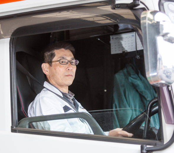 「2024年問題」で物流・運送業界を中心に人手不足の深刻化や労働環境の改善などへの対応が迫られたことは記憶に新しいところです。しかし、当社では大きな混乱はなく、私自身もこれまで通りに業務に取り組めています。それは、日頃から拘束時間や休憩時間の管理が徹底されているからだと実感しています。ドライバーとして、これまでと変わらず、無事故・無違反を続けていくことが何よりも大事と考えています。