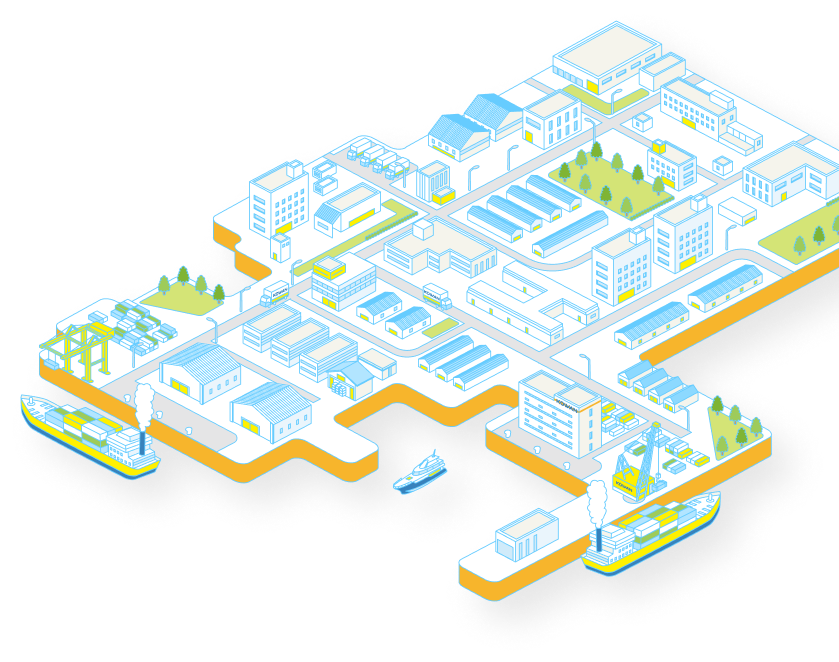 岡山県備前市にある片上港を拠点に、各種船舶の入出港に合わせて荷物の積み下ろしや仕分け、倉庫への輸送、保管など、港湾業務全般を実施しています。また、最新のコンピューターシステムを導入し、海外からの商品の輸入に関する手続きをスムーズに行っています。